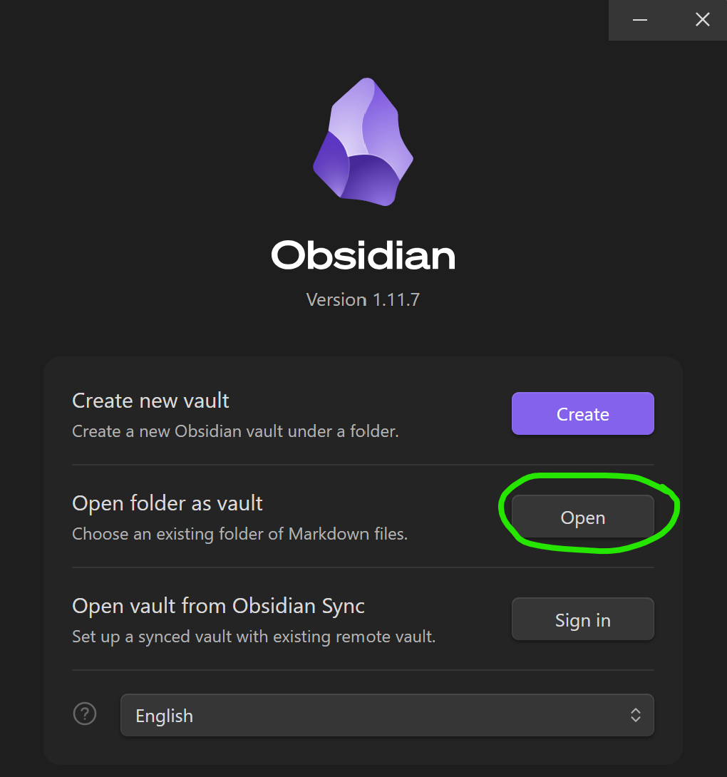 From Obsidian, you can open any existing folder on your computer as a ‘vault’, or create a new folder to work from. Vaults are just folders.